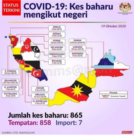 10/19現在のマレーシアの新型コロナウィルスの感染者数865名です。