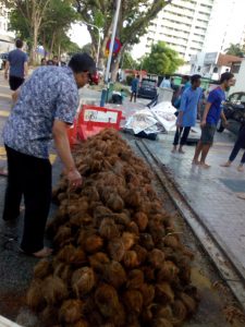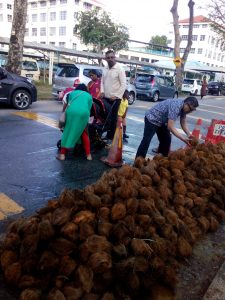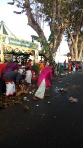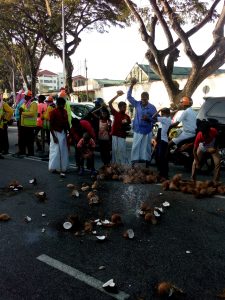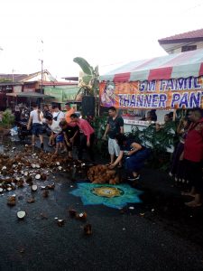 道路を清めるためのココナッツ割りも