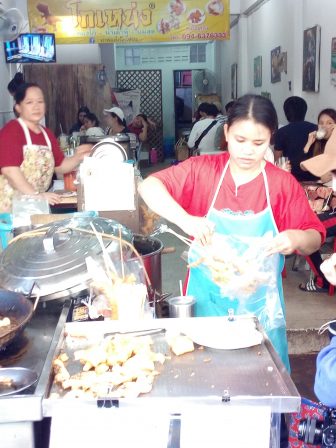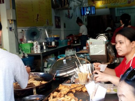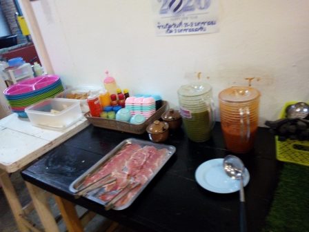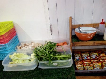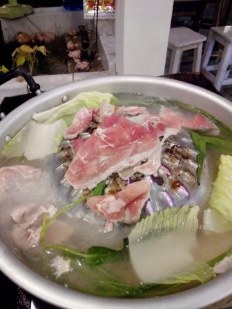 めんはクイティオで豚肉と青菜(野菜)他もろもろをトッピングTopping。