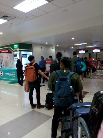 空港の受付カウンターCounterは長蛇の列でした。😨(何分かかることか?何時間かも?)