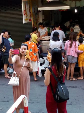 お店の前で自撮りする人が多い。