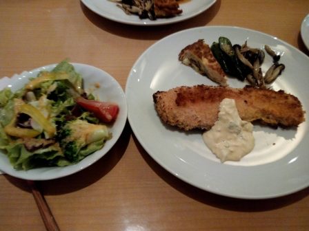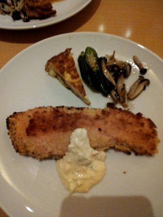 サーモンのカツ定食、脂ののっているサーモン 美味しいー。