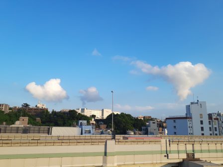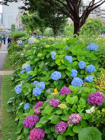 道路の緑地帯の紫陽花がきれい。