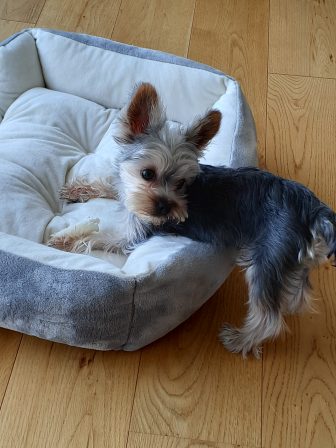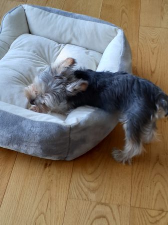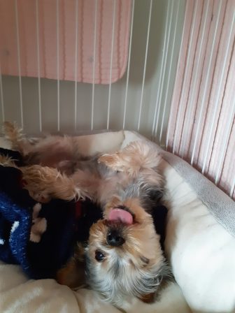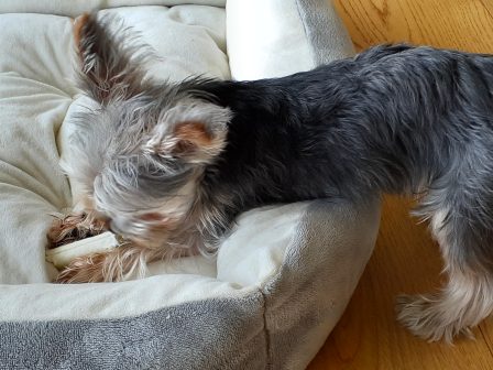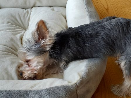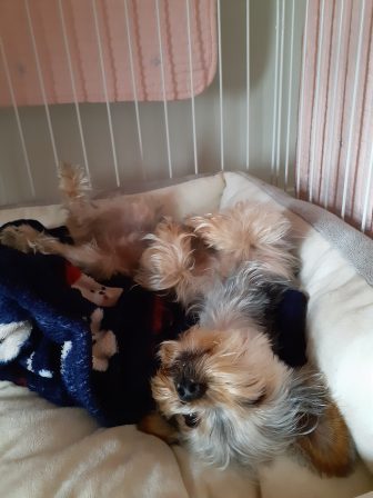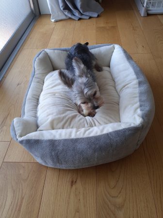 移動してないけれど、体半分はいつでも動けるようにベッドから出してます。