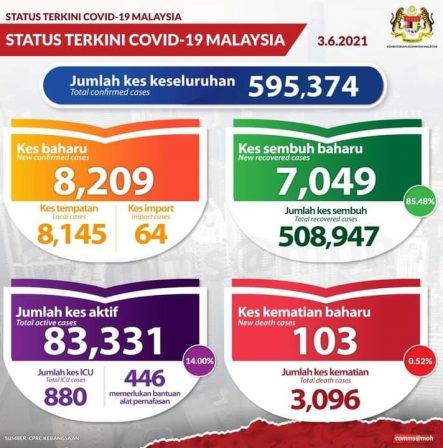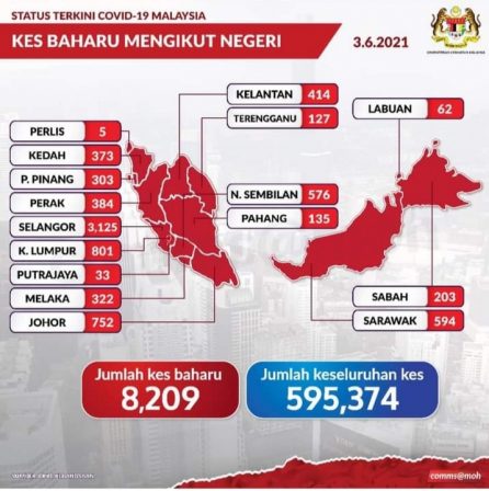 6/3のマレーシアの新規新型コロナウィルス感染者数8,209名です。(日本では2,825名↓)