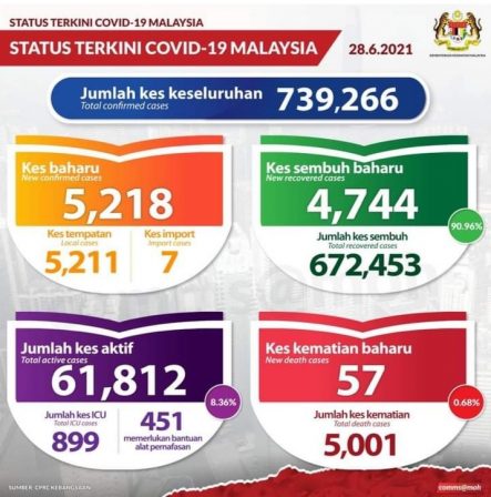6/28のマレーシアの新規新型コロナウィルス感染者数5,218名です。(日本では1,000名)