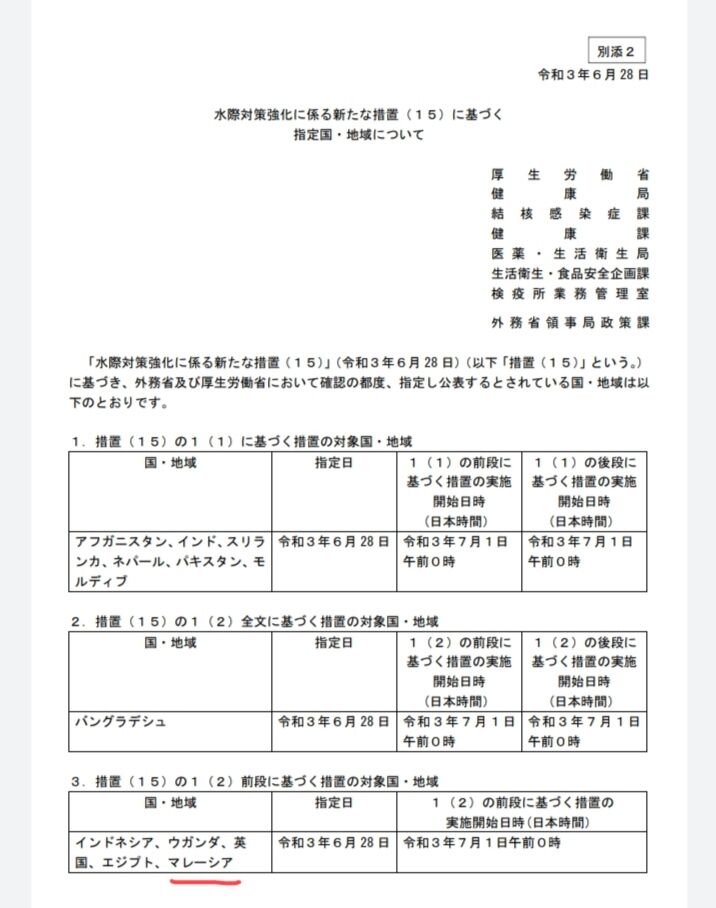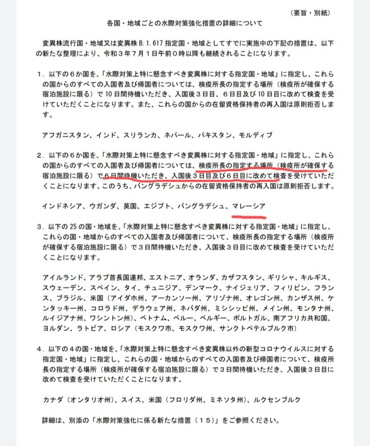 日本の水際対策強化措置によって、マレーシアから日本へ帰国した場合、