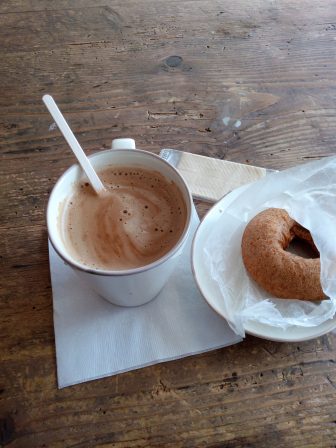 ドーナツも一緒に食べながら