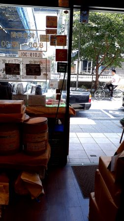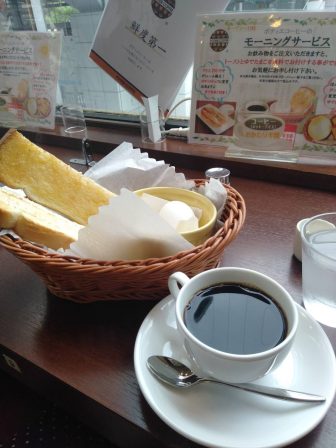 その場でコーヒー豆を挽いてくれて、自社の羊羹までいただきました。