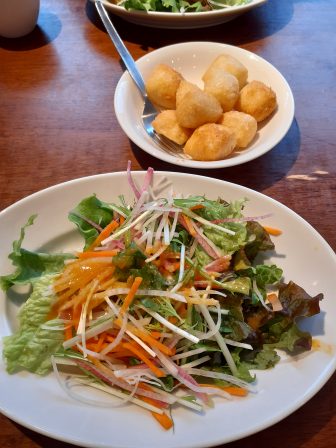 ドリンクDrink☕️とサラダSalad🍴、パンはお代わり自由。