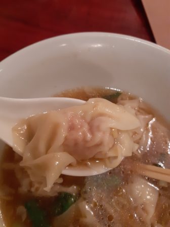 大きくて美味しい手作りワンタン雲呑が5個入ってました。感激