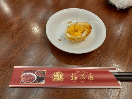 最初に烏龍茶で茹でたゆで卵が出てきました。