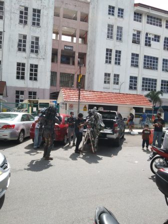 日本で言うと竹馬に乗っているので、大きな人 巨人に見えて怖いです。💨💥😨