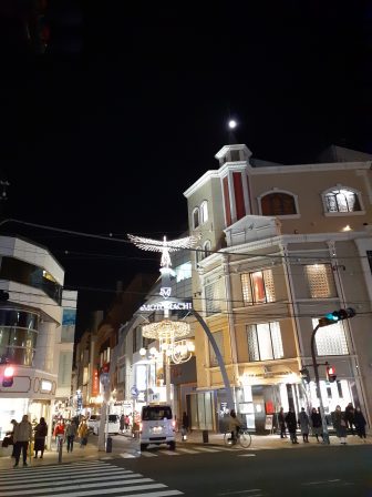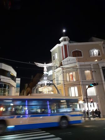 横浜球場の文字の上、お月さんです。