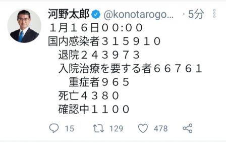 私は河野大臣のツィーターから数字をもらってます。