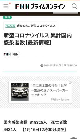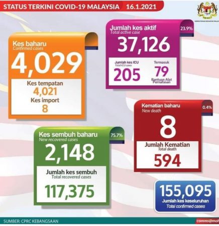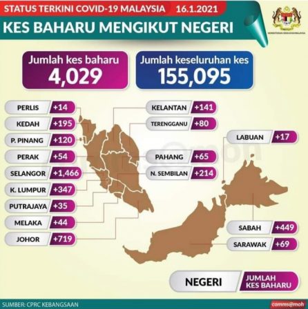 1/16のマレーシアの新規新型コロナウィルス感染者数4,029名です。(日本では6,696名)